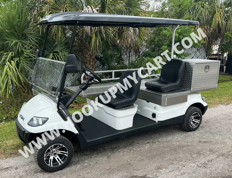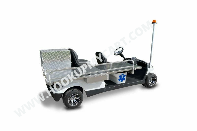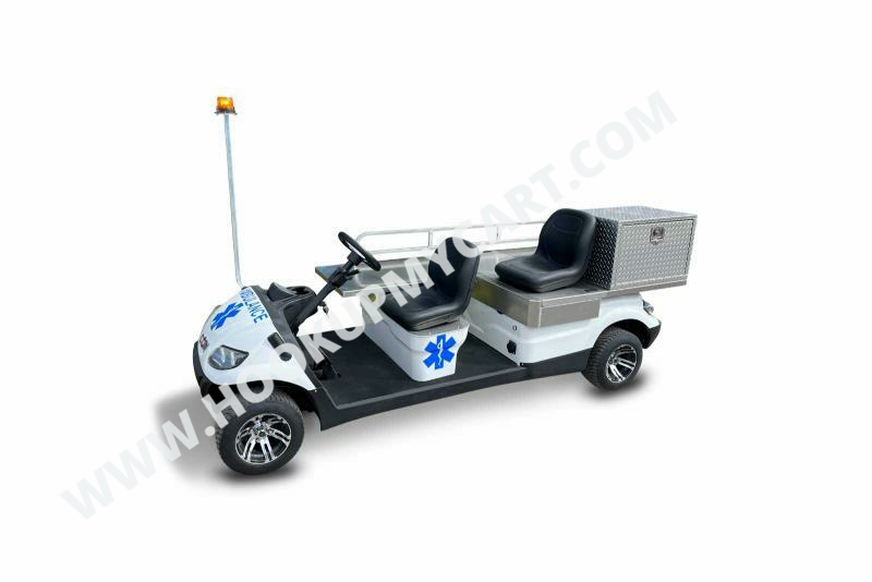 The two-passenger ICON C30AMB medical and commercial golf cart comes equipped with a 27������ locking cargo box to store emergency medical supplies, an emergency strobe light, and an optional narrow side stretcher with mounts for safe patient transport.