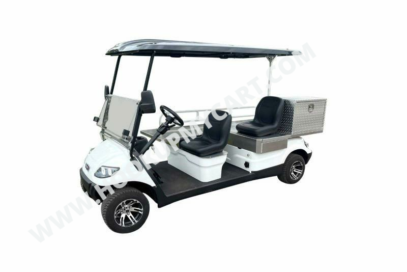 Standard safety features include 4-wheel hydraulic disc brakes, electronic motor brake, seat belts, headlights, taillights, and turn signals. The ICON C30AMB medical golf cart also comes with a canopy which includes a folding hard-poly windshield.
