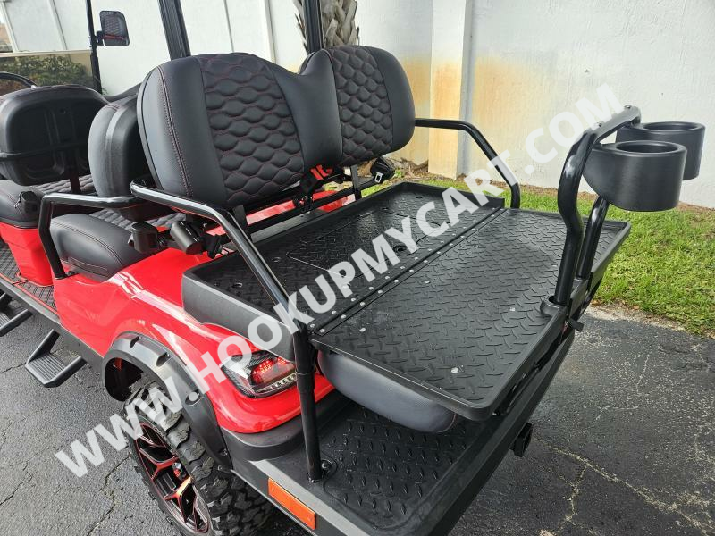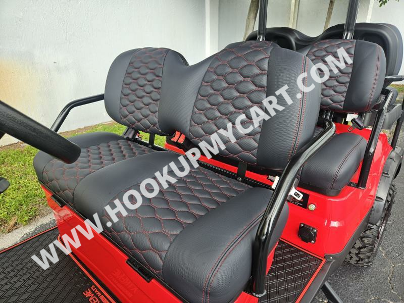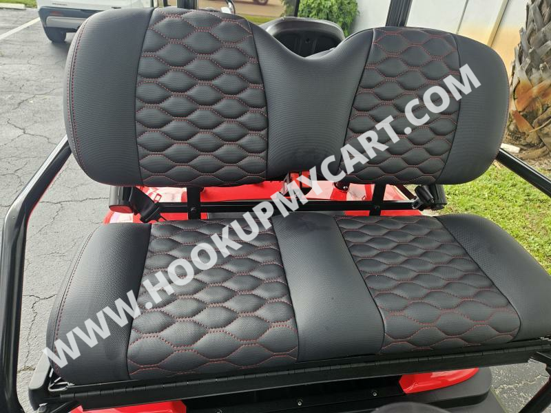 Seats: Marine Grade Vinyl, Custom Stitched Panel, Single Color, Color Matched with White or Black Accents, Fold Flat Rear Seat for Hauling