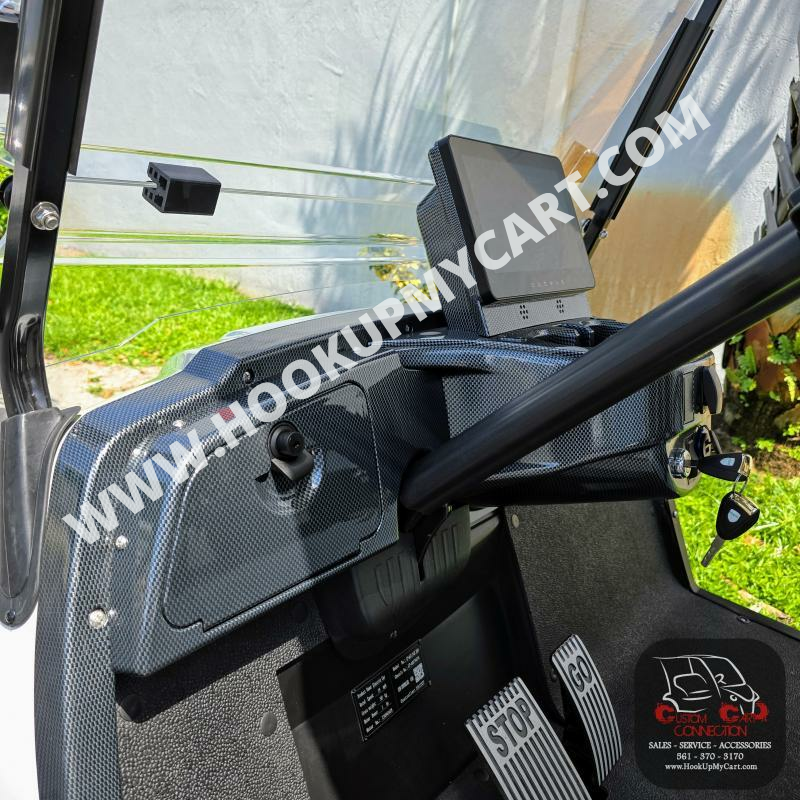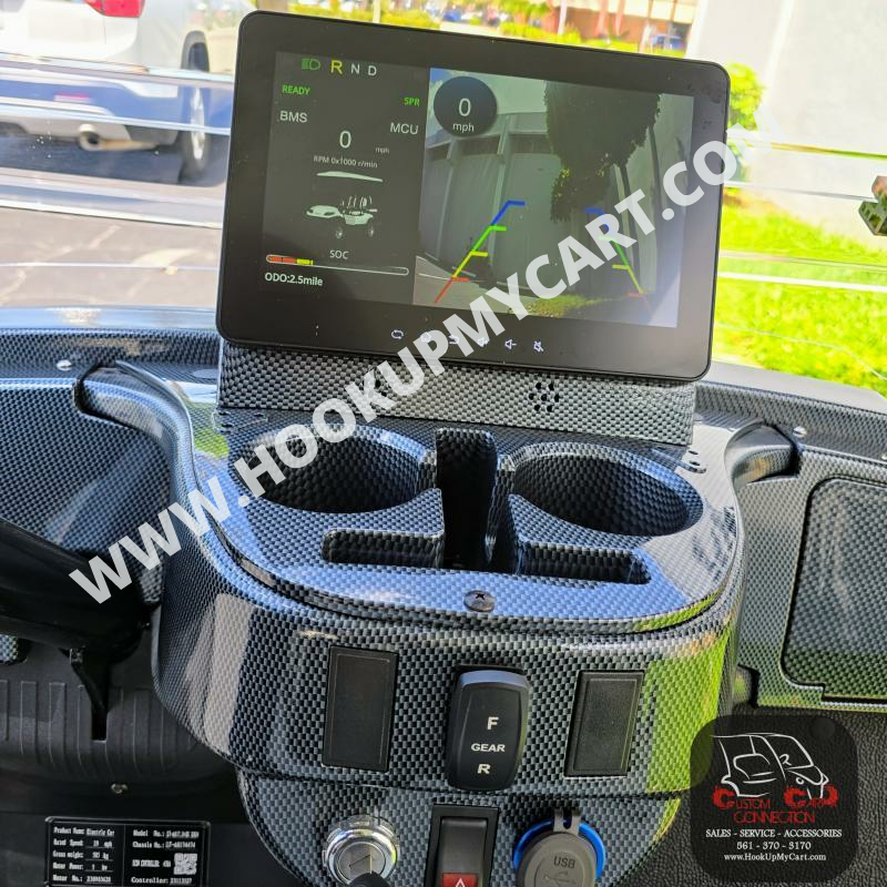 Dash Components:** Forward/Neutral/Reverse Switch, USB and 12V Plugs, Cubby Storage, Multiple Cup Holders, Key Switch, Instrumentation Cluster