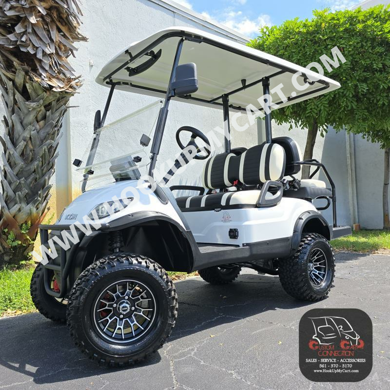2025 ICON i40L Lifted Electric Golf Cart - 4 Passenger - Alpine White w/Two Tone Seats | Custom Cart Connection