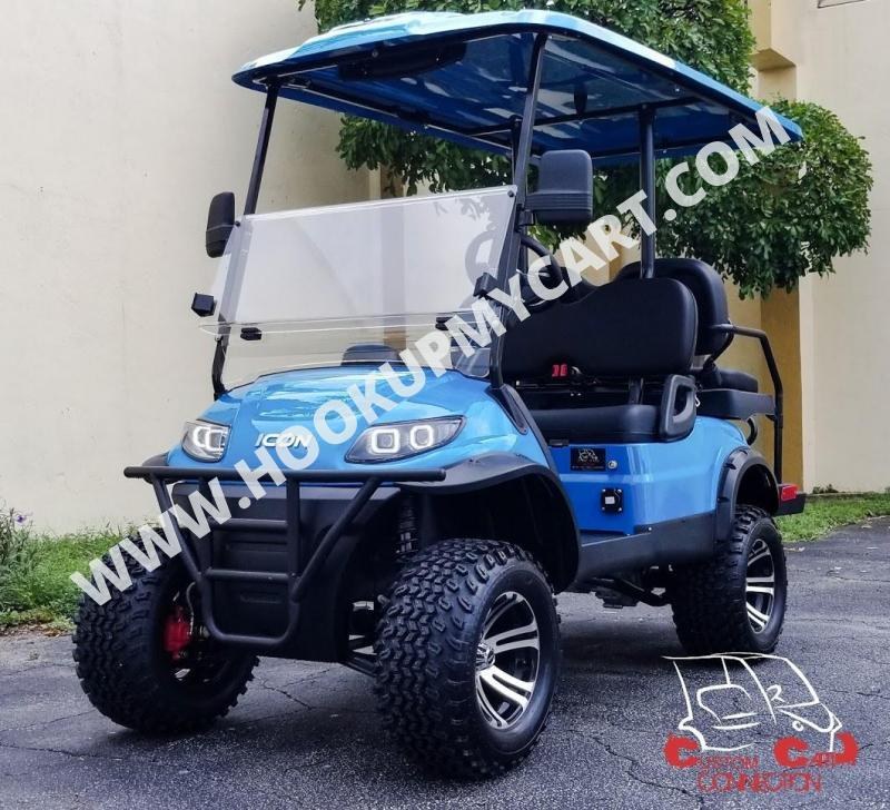 2025 ICON i40L Electric Golf Cart - 4 Passenger - Caribbean Blue w/Black Seats | Custom Cart Connection