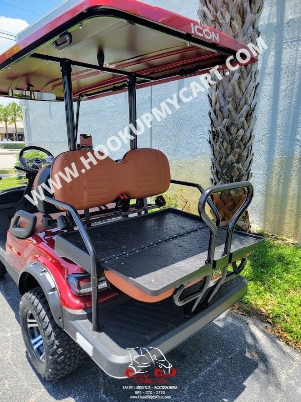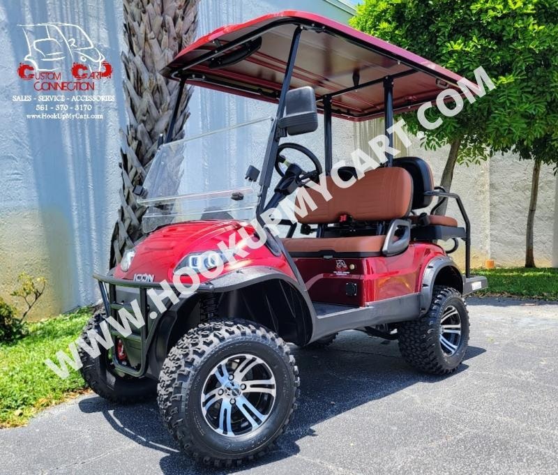2025 ICON i40L Electric Golf Cart - 4 Passenger - Sangria Red w/Brown Seats | Custom Cart Connection