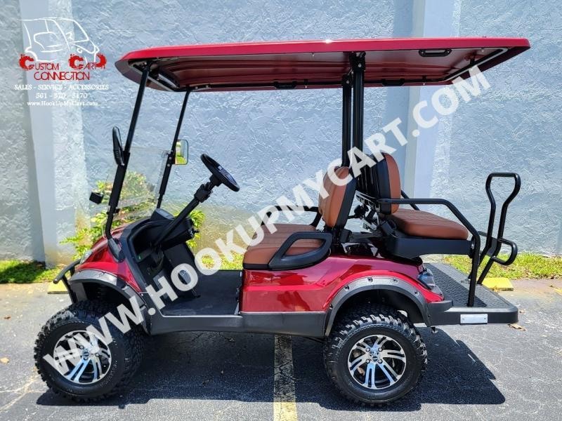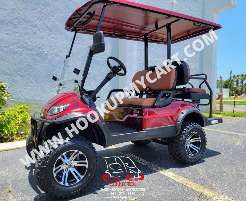 2025 ICON i40L Electric Golf Cart – 4 Passenger – Sangria Red w/Brown Seats