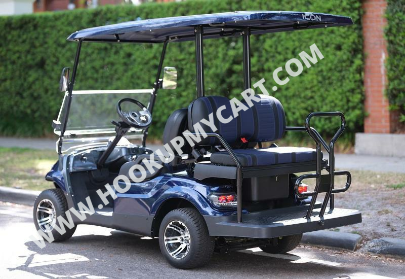 Our newest adventures await you and your “plus-5″ on the robust lifted 4-seater ICON G40L gas golf cart! With a well-built chassis and superior fuel efficiency, this vehicle is tenacious *and* goes the distance. ICON gas golf carts artfully blend greater torque, longer range, and convenient accessories to offer a comfortable and safe ride with rugged good looks.
