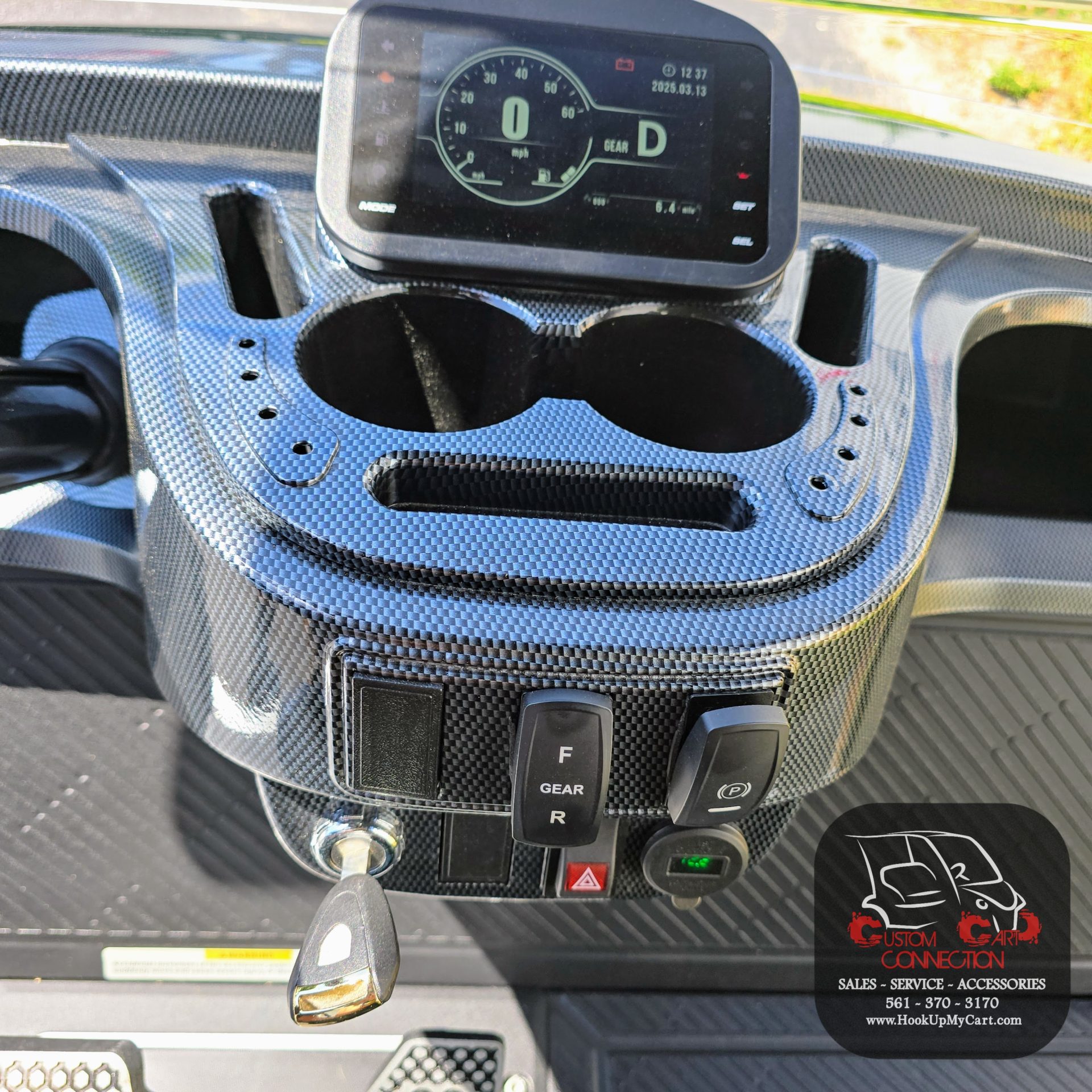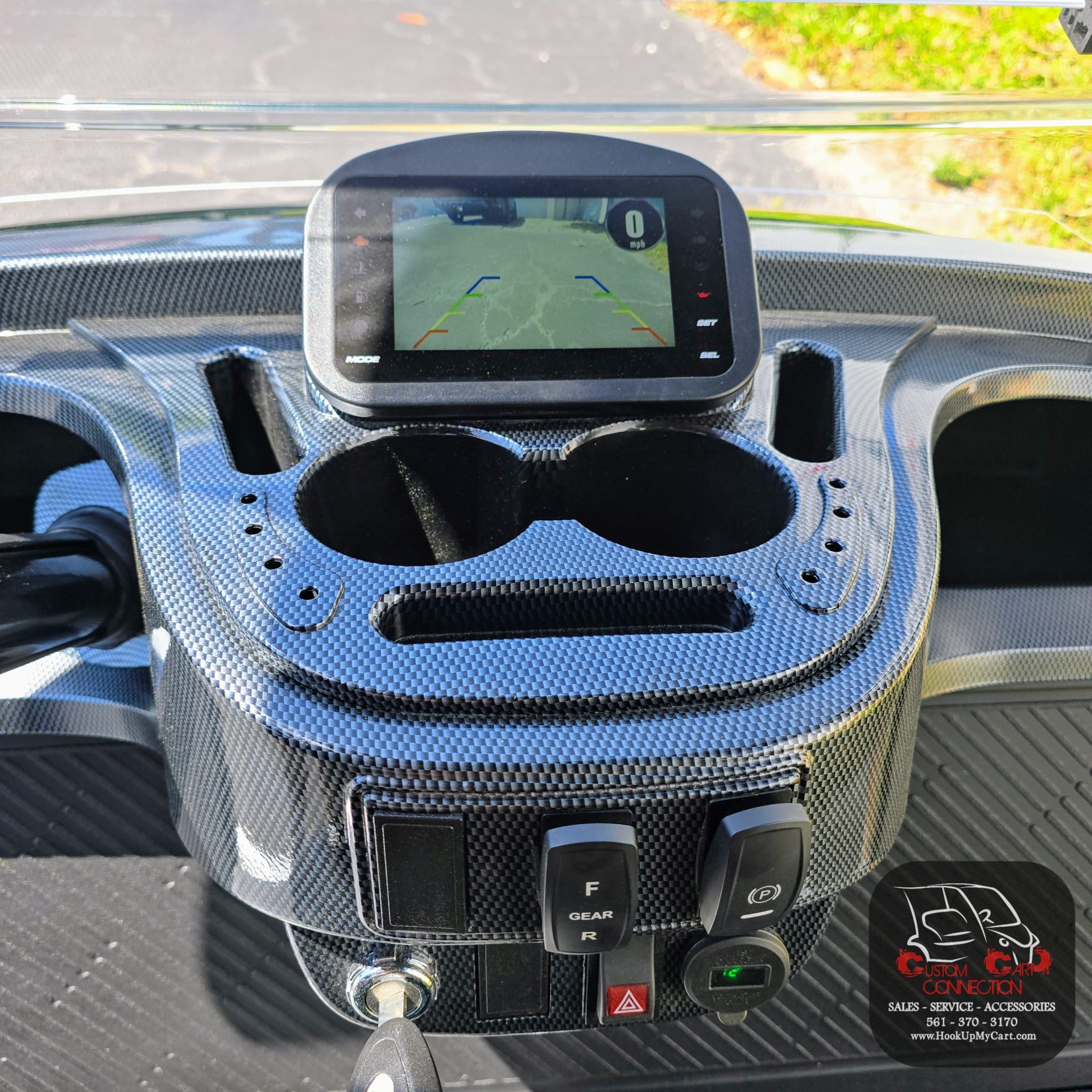 - Dash Components: Forward/Reverse Switch, USB and 12V Plugs, Cubby Storage, Multiple Cup Holders, Key Switch, Instrumentation Cluster
