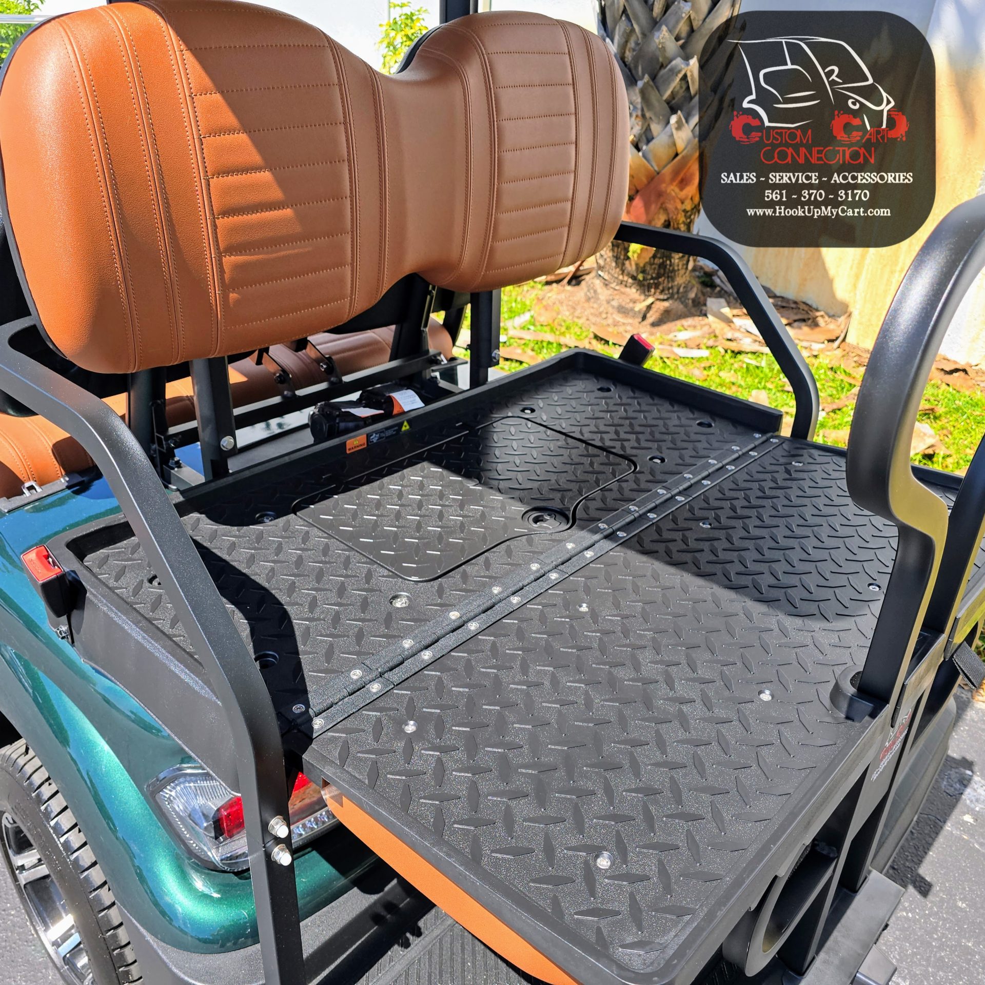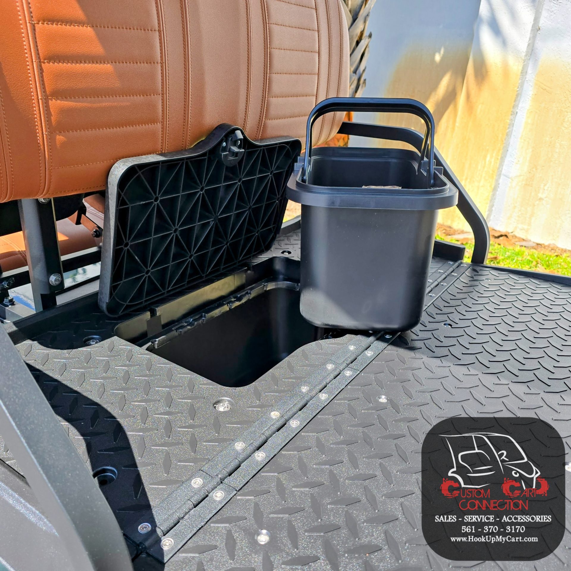 - Seats: Thick Plush Seats with Custom Stitched Paneling, Marine Grade Vinyl, Solid Black or Brown, Color Matched with Black Accents. Foldable Rear Seat Perfect for Hauling. Built in Cooler Beneath Rear Seat.
