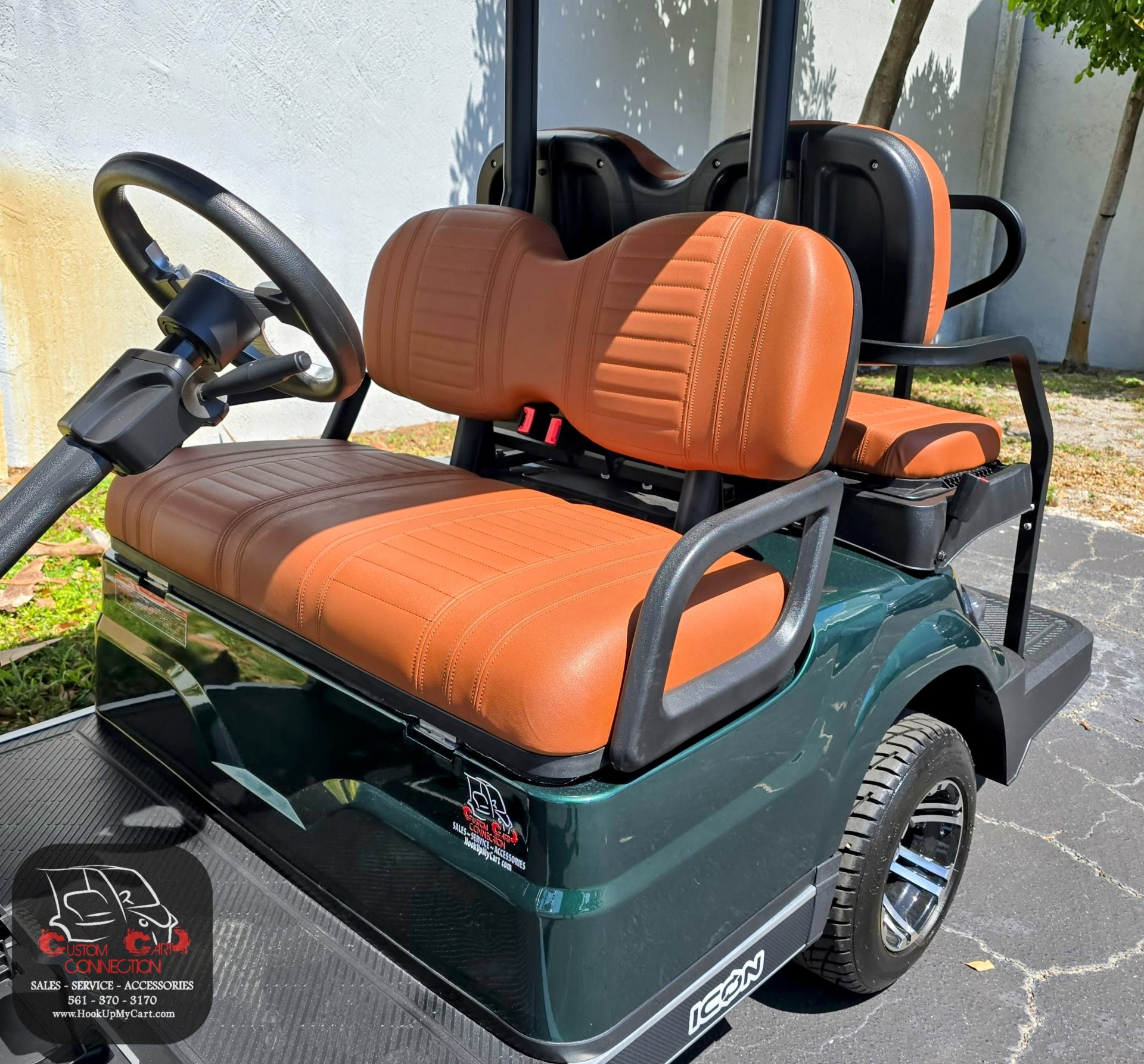 Our newest adventures await you and your “plus-5″ on the robust lifted 4-seater ICON G40L gas golf cart! With a well-built chassis and superior fuel efficiency, this vehicle is tenacious *and* goes the distance. ICON gas golf carts artfully blend greater torque, longer range, and convenient accessories to offer a comfortable and safe ride with rugged good looks.