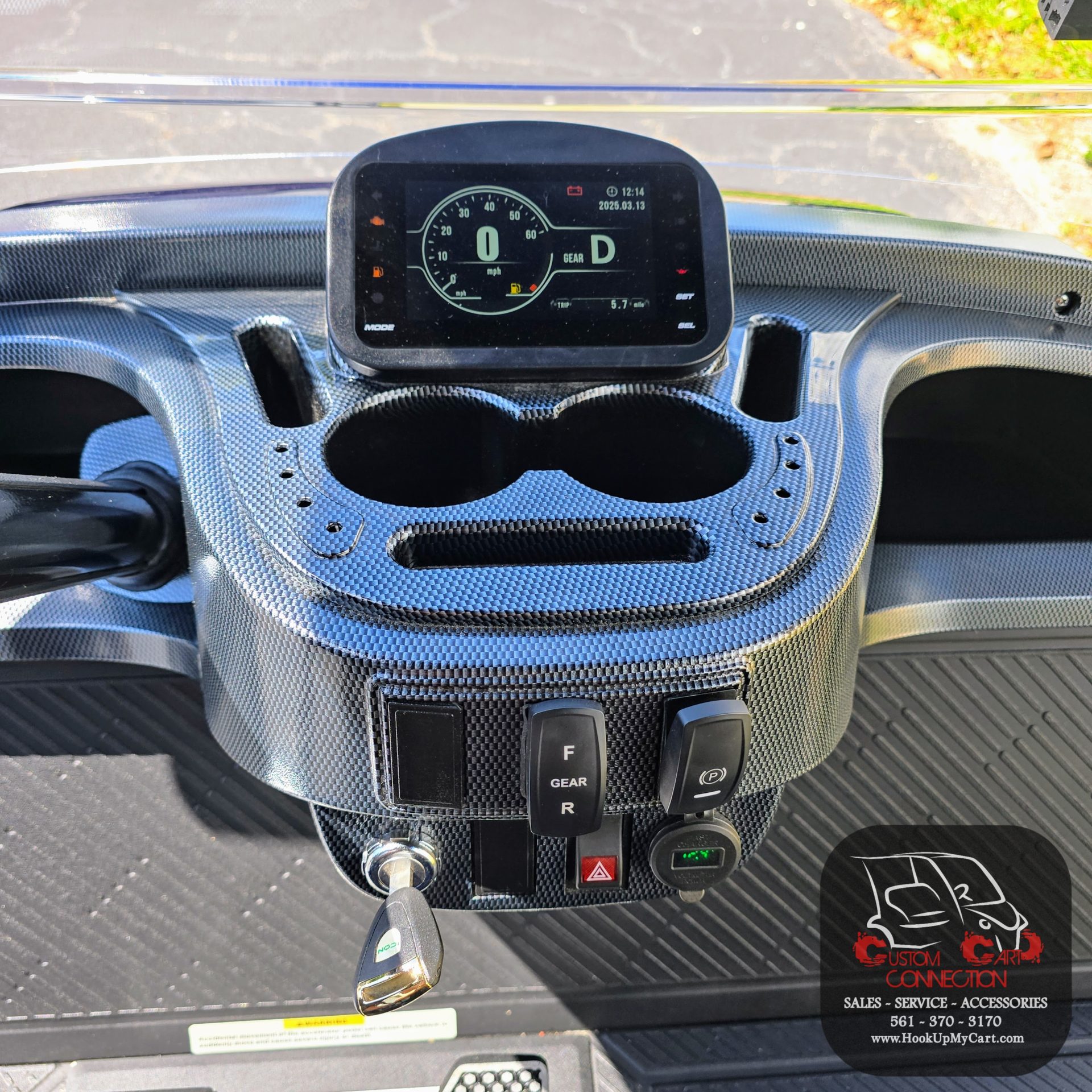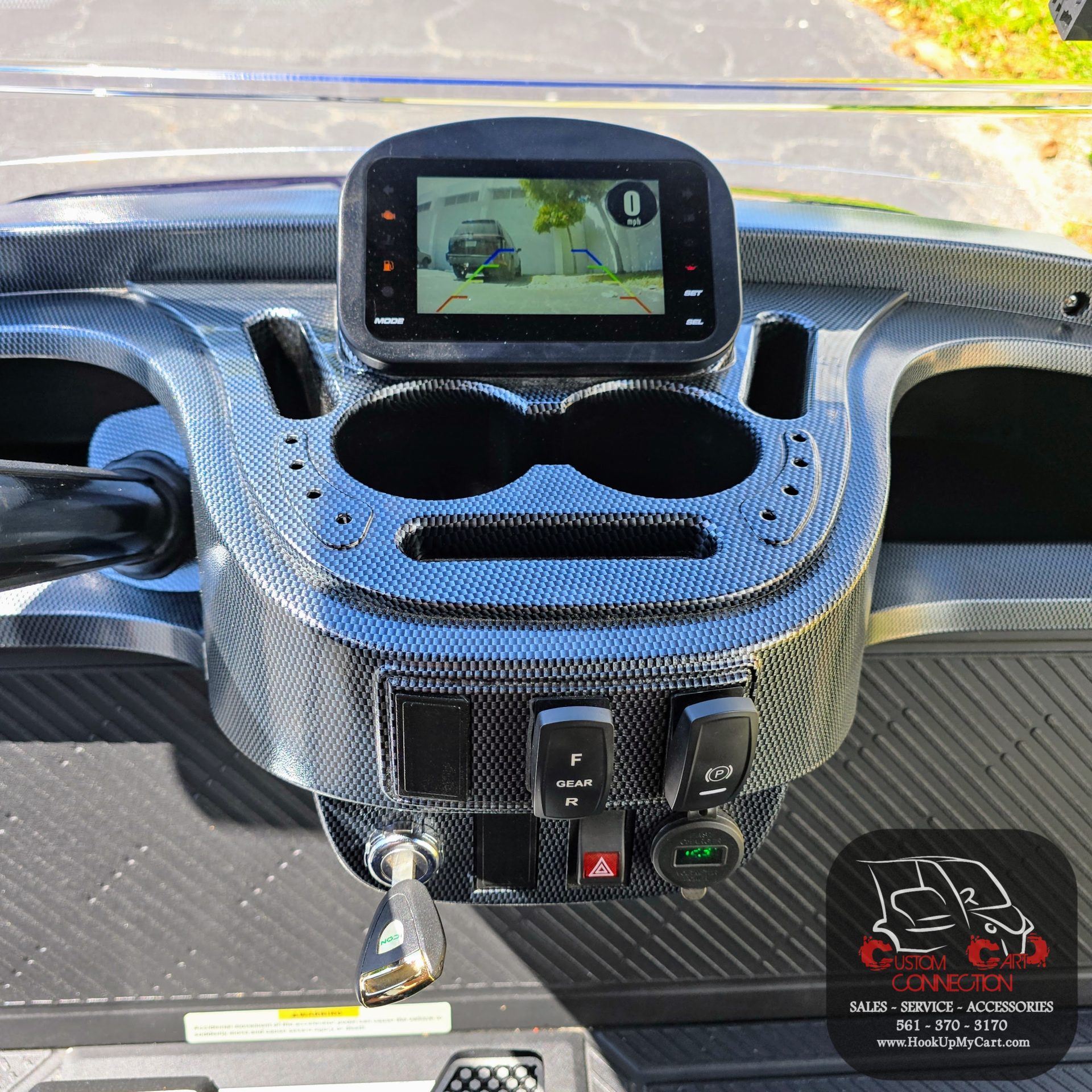 - Dash Components: Forward/Reverse Switch, USB and 12V Plugs, Cubby Storage, Multiple Cup Holders, Key Switch, Instrumentation Cluster