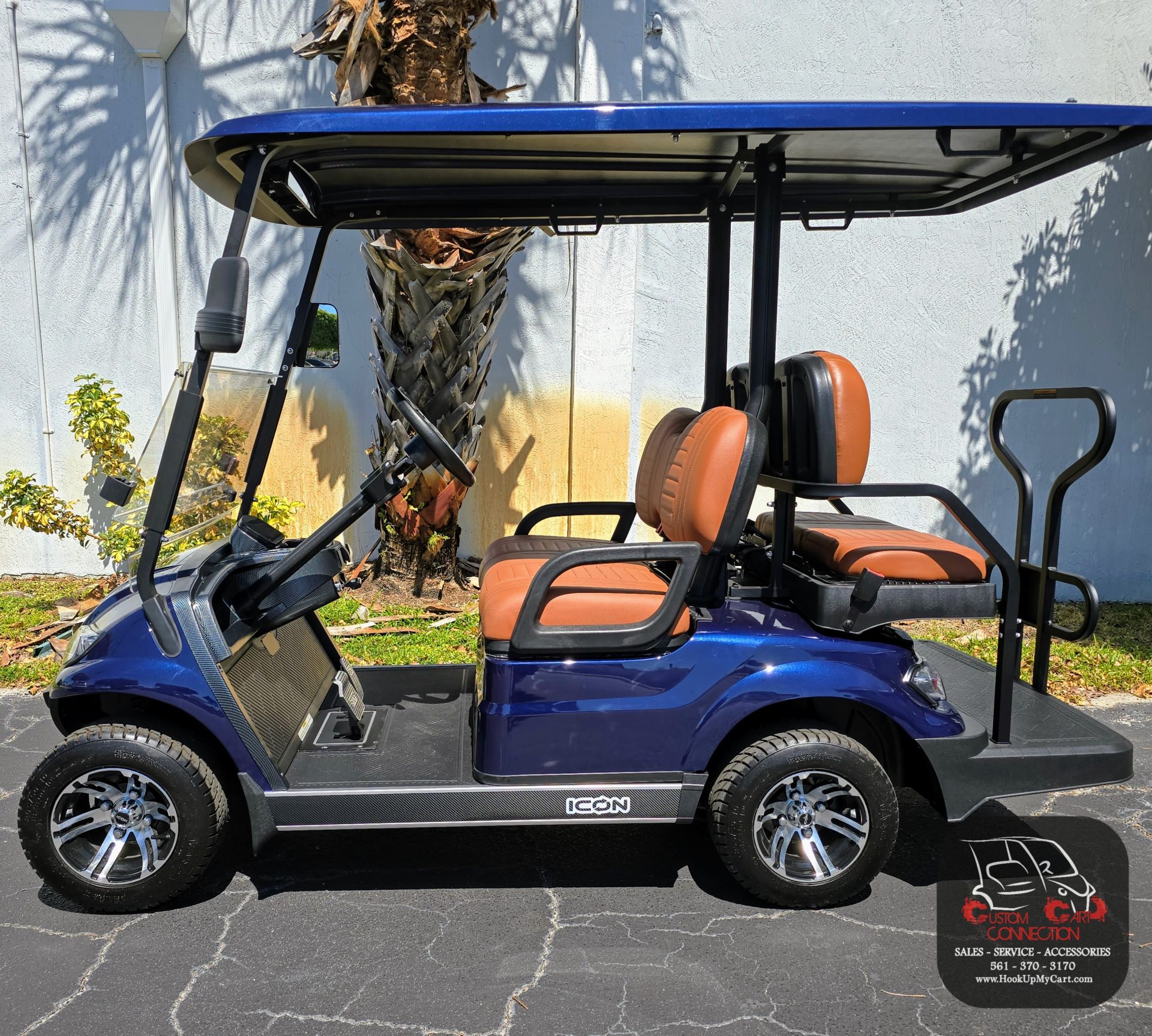 Our newest adventures await you and your “plus-5″ on the robust lifted 4-seater ICON G40L gas golf cart! With a well-built chassis and superior fuel efficiency, this vehicle is tenacious *and* goes the distance. ICON gas golf carts artfully blend greater torque, longer range, and convenient accessories to offer a comfortable and safe ride with rugged good looks.