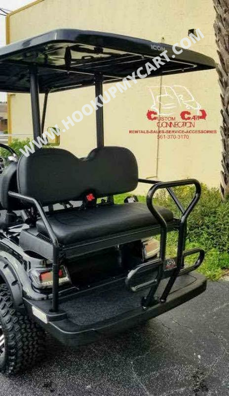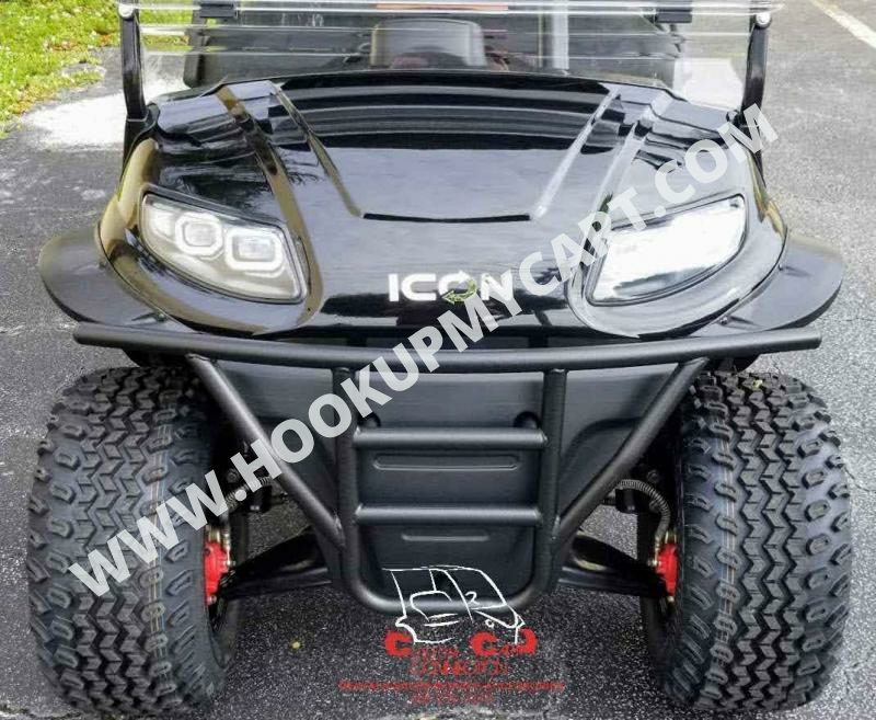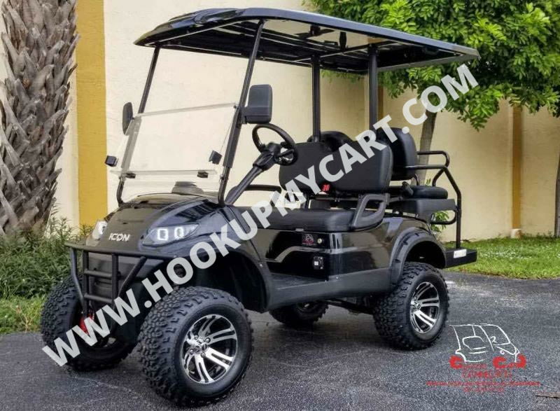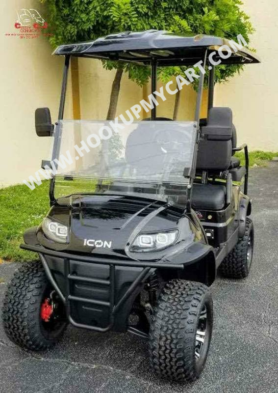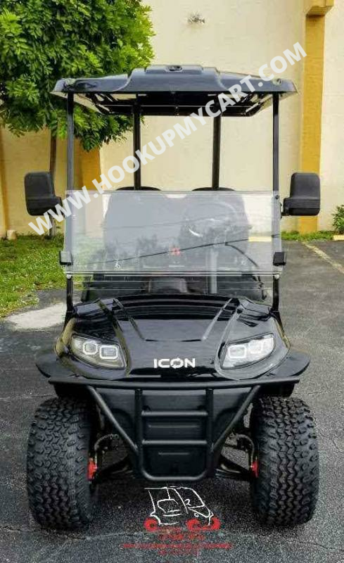 Our newest adventures await you and your “plus-5″ on the robust lifted 4-seater ICON G40L gas golf cart! With a well-built chassis and superior fuel efficiency, this vehicle is tenacious and goes the distance. ICON gas golf carts artfully blend greater torque, longer range, and convenient accessories to offer a comfortable and safe ride with rugged good looks.
