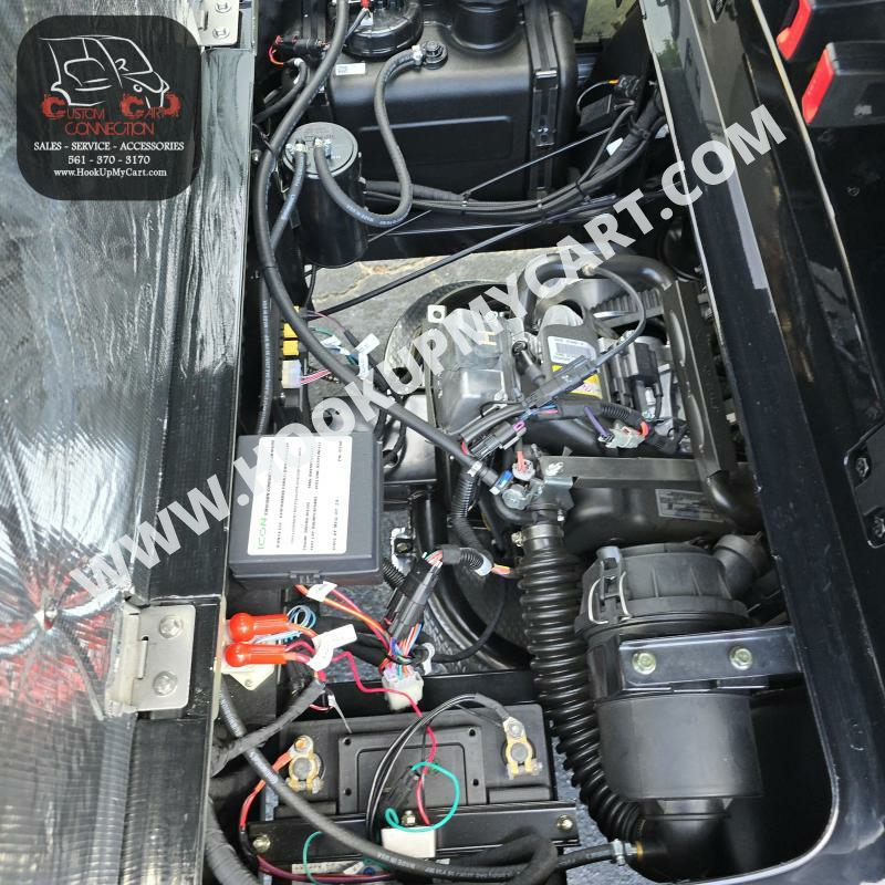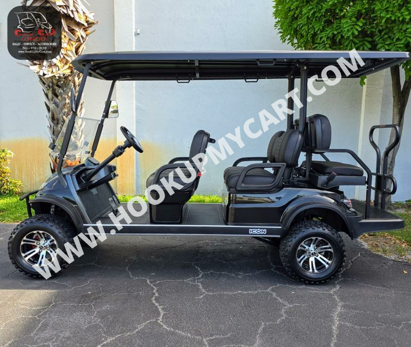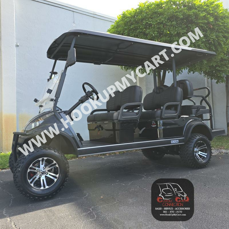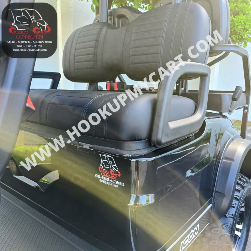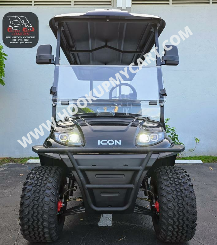 Our newest adventures await you and your “plus-5″ on the robust lifted 4-seater ICON G40L gas golf cart! With a well-built chassis and superior fuel efficiency, this vehicle is tenacious and goes the distance. ICON gas golf carts artfully blend greater torque, longer range, and convenient accessories to offer a comfortable and safe ride with rugged good looks.