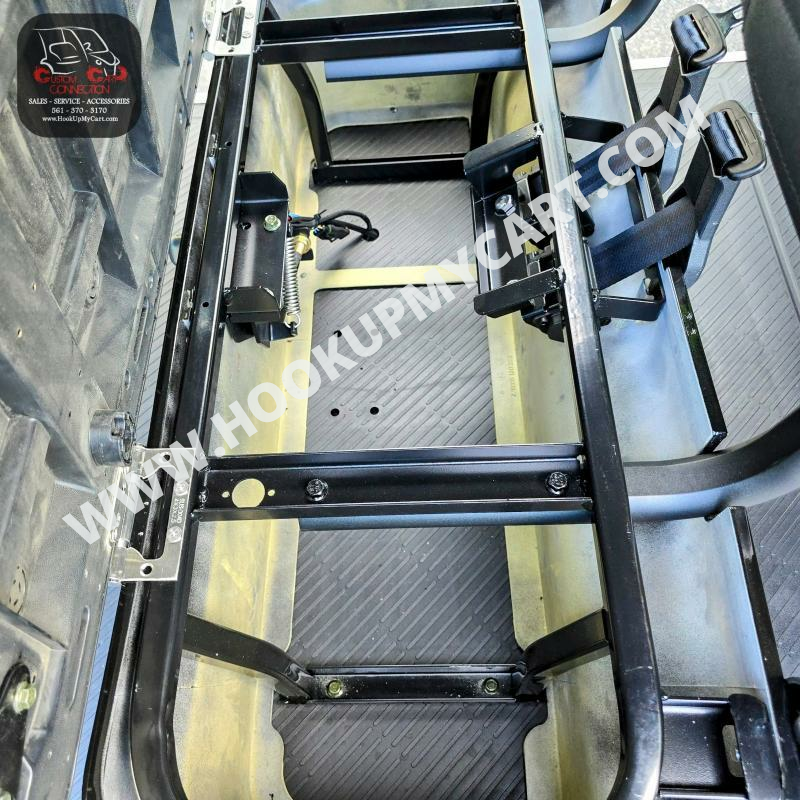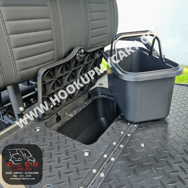- Seats: Thick Plush Seats with Custom Stitched Paneling, Marine Grade Vinyl, Solid Black or Brown, Color Matched with Black Accents. Foldable Rear Seat Perfect for Hauling. Built in Cooler Beneath Rear Seat.