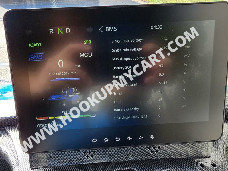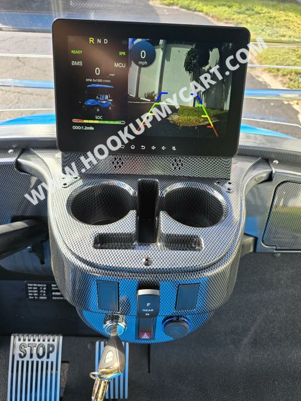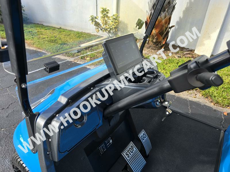 Dash Components: Carbon Fiber Style Dash with 10″ Digital Display, Back-up Camera, Driver & Passenger Locking Glove Compartments, Forward/Neutral/Reverse Switch, USB and 12V Plugs, Multiple Cup Holders, Key Switch, Instrumentation Cluster