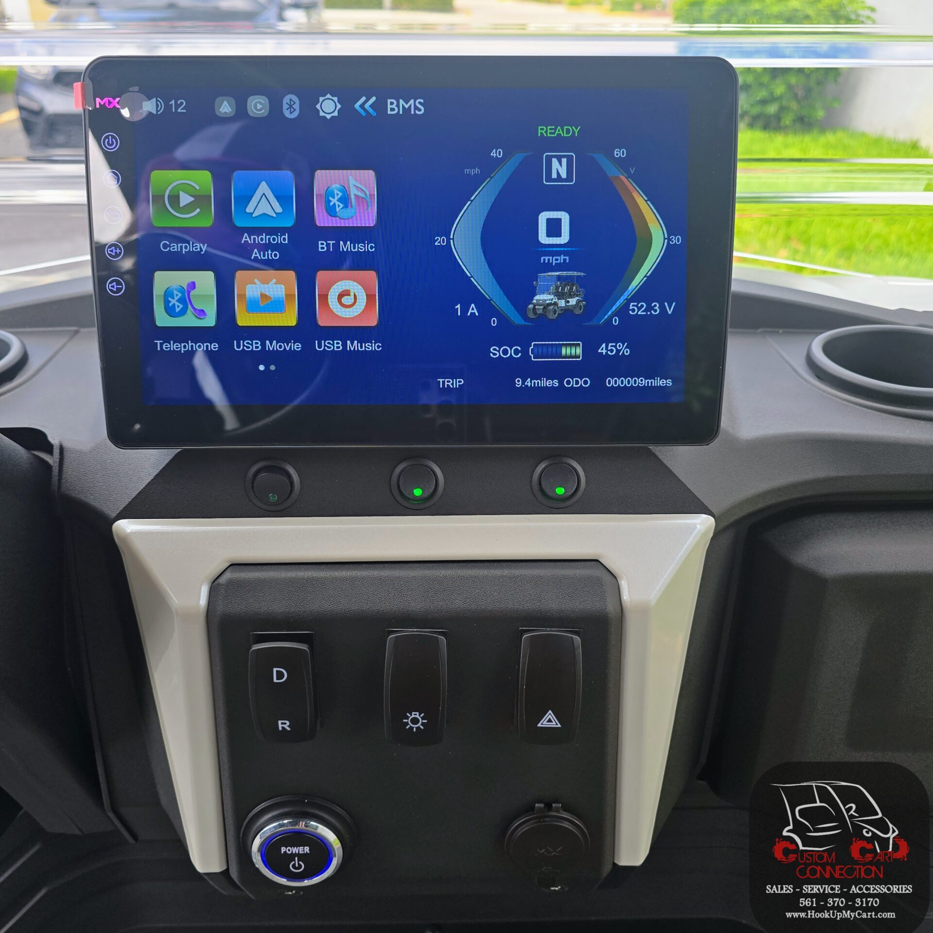 •  Standard Features: 10.1” Multimedia Digital Display Screen with CarPlay, Speedometer, Backup Camera, DOT Windshield, USB Ports & Pre-Wired 12v Switches, Digital Gauges, Built-in SoundExtreme Soundbar, Assist Handle, Cup Holders, Locking Glove Compartments, Tilt Steering, Horn, Tee & Ball Holders